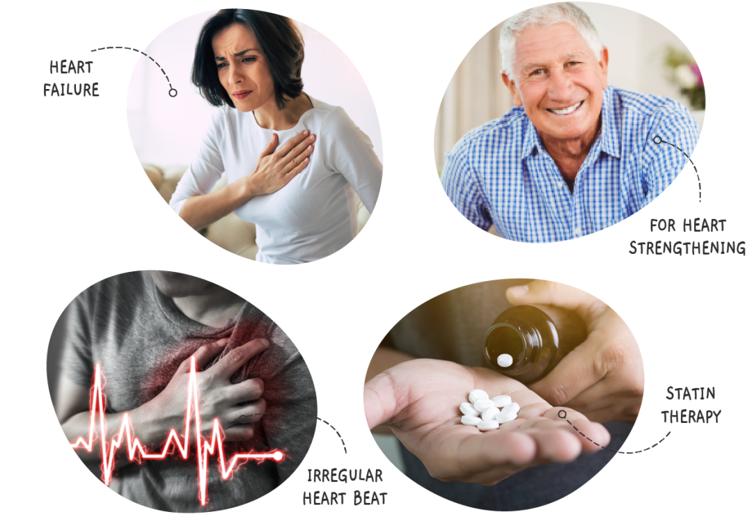 Complex consists of two vitally important ingredients for heart Coenzyme Q10 and L-Carnitine, that ensure heart contractions, provide energy, reduce inflammation, anti oxidative stress and improves blood circulation.